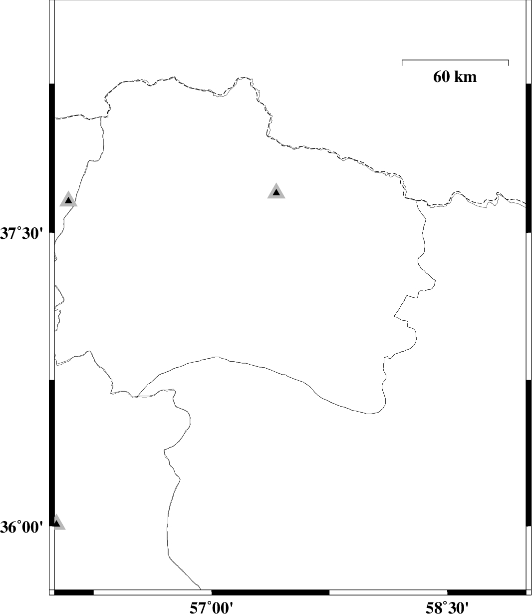 | 2012/06/11 | 05:23:55.6 | 09:53:55.6 | 37.11 | 57.79 | 14 | ML:2.2 | Khorasan(north) Province, 27 km East of Esfarayen | ||