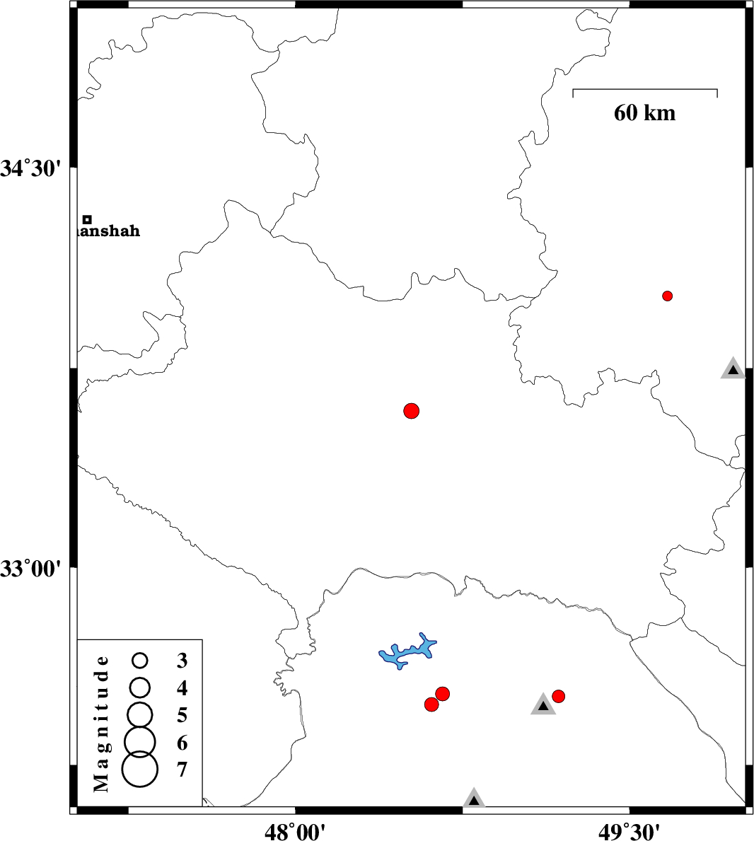 | 2012/07/11 | 22:55:27.2 | 03:25:27.2 | 33.59 | 48.52 | 16 | ML:3.1 | Lorestan Province, 18 km North-East of Khorramabad | ||