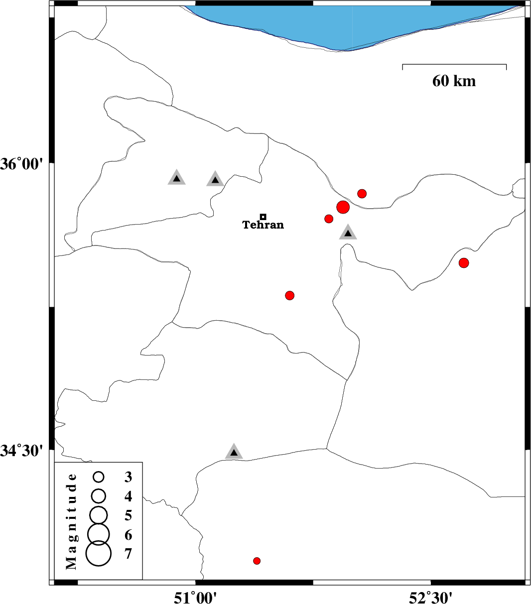 | 2012/07/02 | 04:55:40.2 | 09:25:40.2 | 35.71 | 51.85 | 7 | ML:2.4 | Tehran Province, 20 km West of Damavand | ||