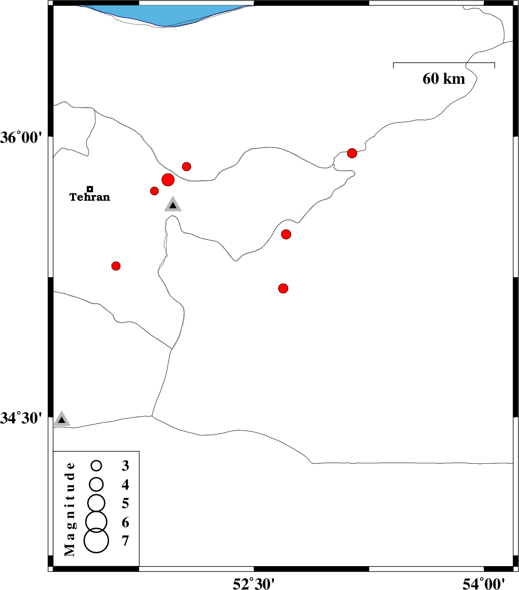 | 2012/07/02 | 04:55:40.2 | 09:25:40.2 | 35.71 | 51.85 | 7 | ML:2.4 | Tehran Province, 20 km West of Damavand | ||