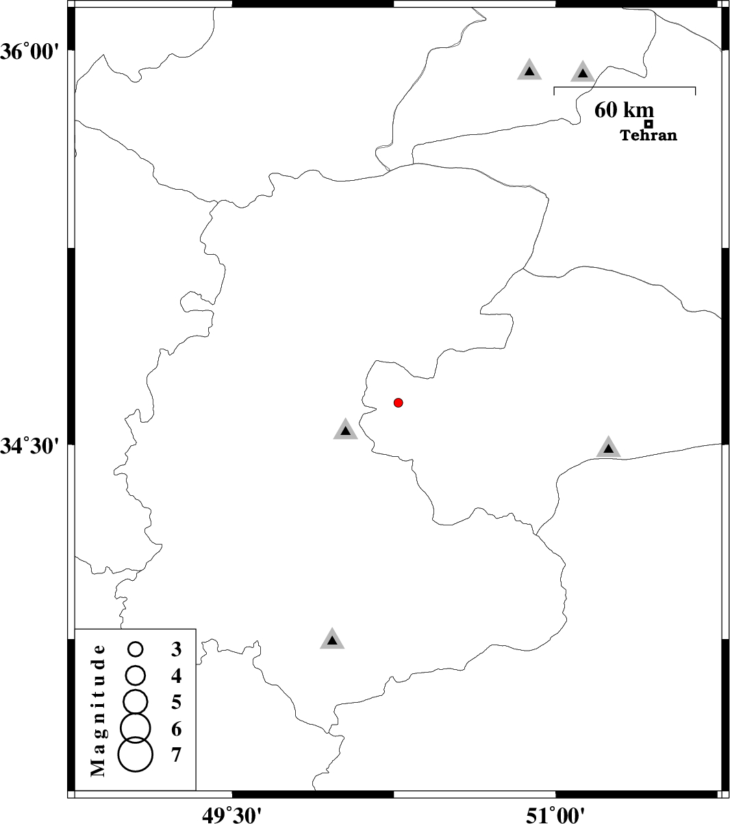 | 2012/07/25 | 07:26:59.2 | 11:56:59.2 | 34.66 | 50.27 | 27 | ML:1.9 | Qom Province, 23 km East of Tafresh | ||