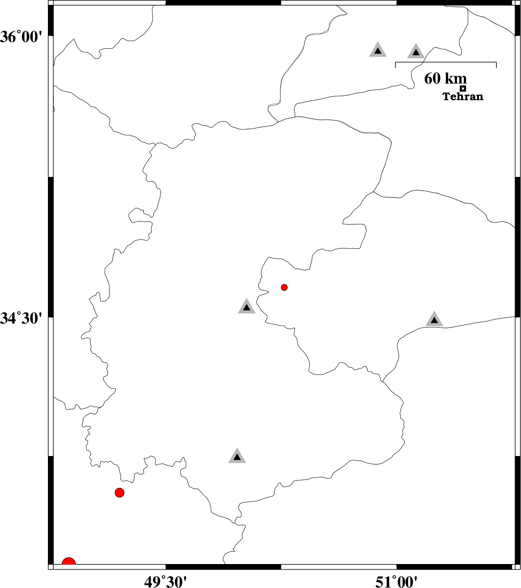 | 2012/07/24 | 07:25:34.2 | 11:55:34.2 | 33.55 | 49.2 | 6 | ML:2.7 | Lorestan Province, 14 km East of Dorud | ||