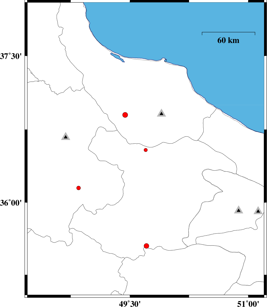 | 2012/07/11 | 23:52:03.4 | 04:22:03.4 | 36.9 | 49.44 | 14 | ML:2.9 | Gilan Province, 9 km Rudbar | ||