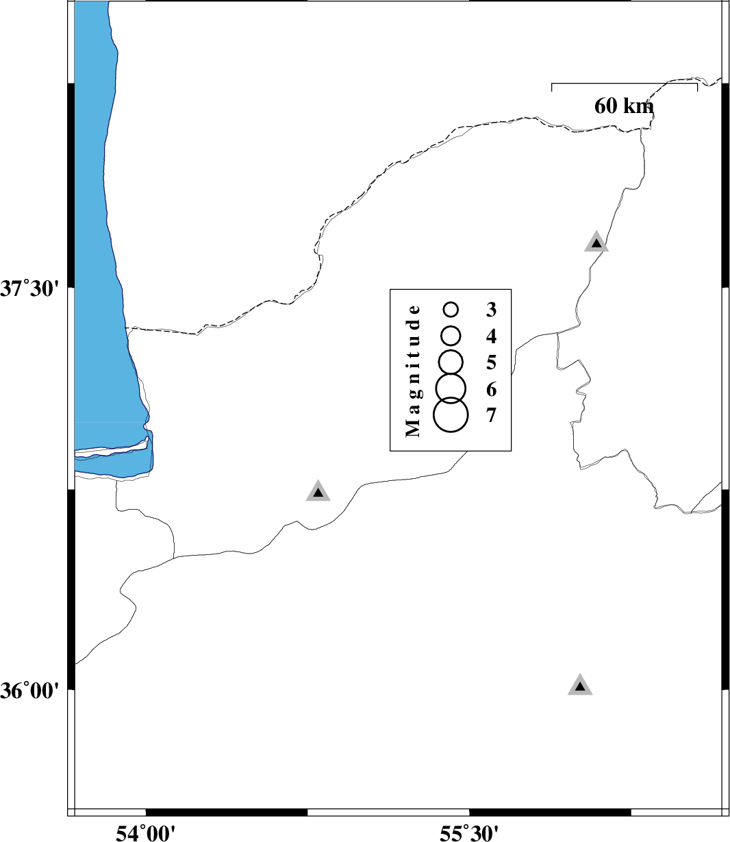 | 2012/07/29 | 17:01:58.3 | 21:31:58.3 | 37.05 | 55.17 | 14 | ML:2.3 | Golestan Province, 5 km Azadshahr | ||