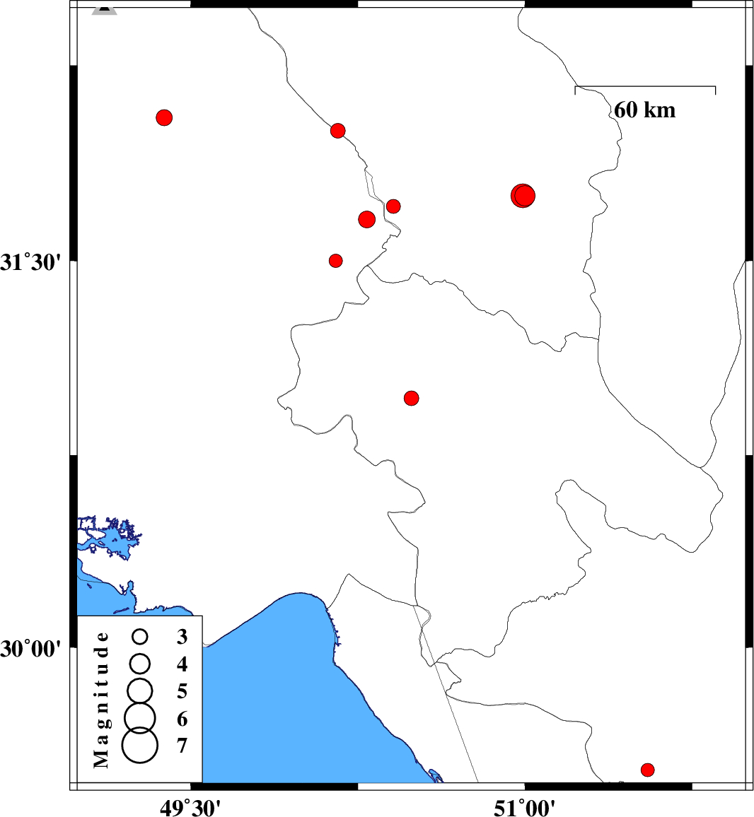 | 2012/07/18 | 11:04:51.7 | 15:34:51.7 | 32.05 | 49.38 | 37 | ML:3.2 | Khoozestan Province, 14 km North of Masjed Soleyman | ||