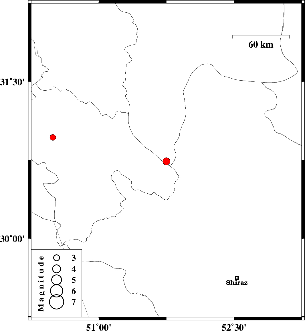 | 2012/08/02 | 07:10:56.2 | 11:40:56.2 | 30.74 | 51.75 | 15 | ML:3.6 | Esfahan Province, 18 km East of Yasuj | ||