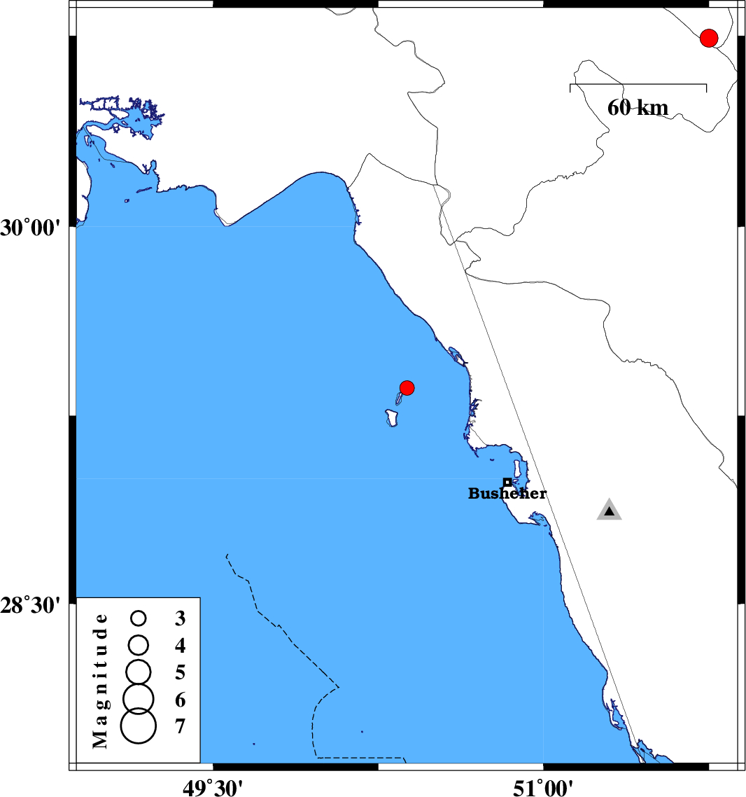 | 2012/08/02 | 19:40:36.5 | 00:10:36.5 | 29.36 | 50.38 | 14 | ML:3 | Persian Gulf, 28 km South-West of Bandar-e genaveh | ||