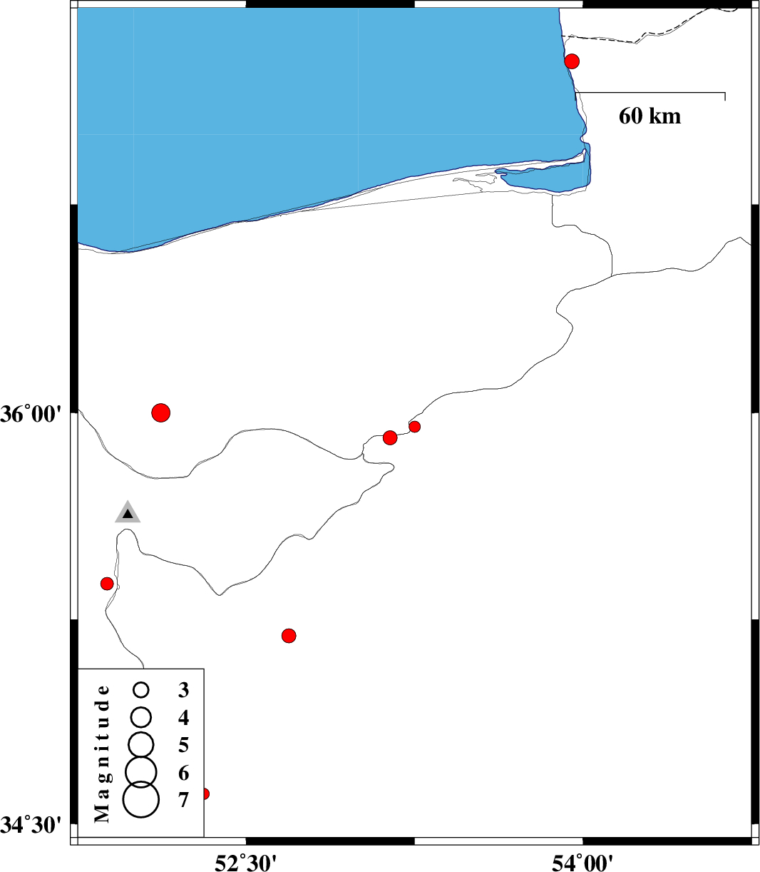 | 2012/07/04 | 07:30:31.8 | 12:00:31.8 | 37.26 | 53.95 | 14 | ML:3 | Golestan Province, 42 km North-West of Bandar-e torkaman |