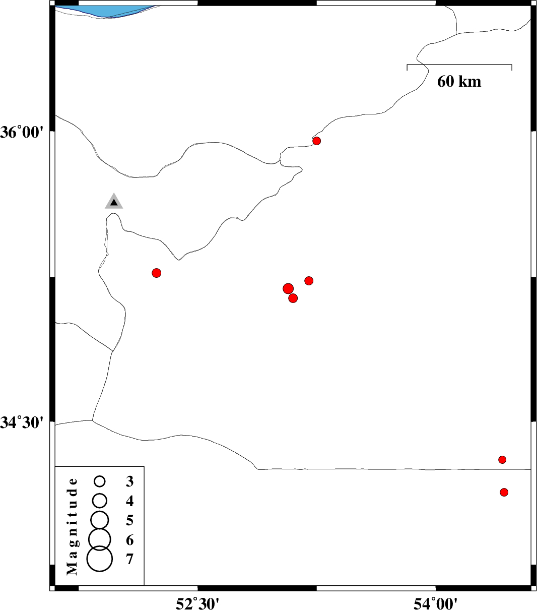 | 2012/08/02 | 20:37:21.4 | 01:07:21.4 | 35.95 | 53.25 | 14 | ML:2.3 | Semnan Province, 26 km South-East of Pol-E-Sefid | ||