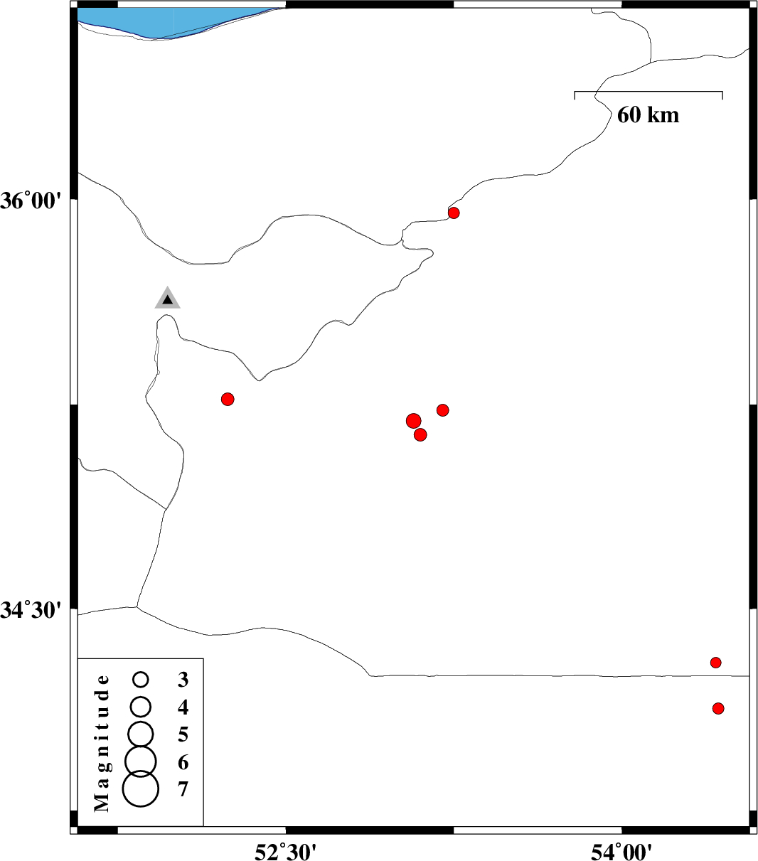 | 2012/08/02 | 20:37:21.4 | 01:07:21.4 | 35.95 | 53.25 | 14 | ML:2.3 | Semnan Province, 26 km South-East of Pol-E-Sefid | ||