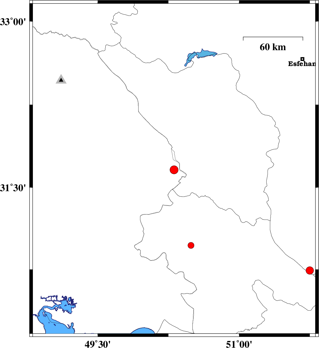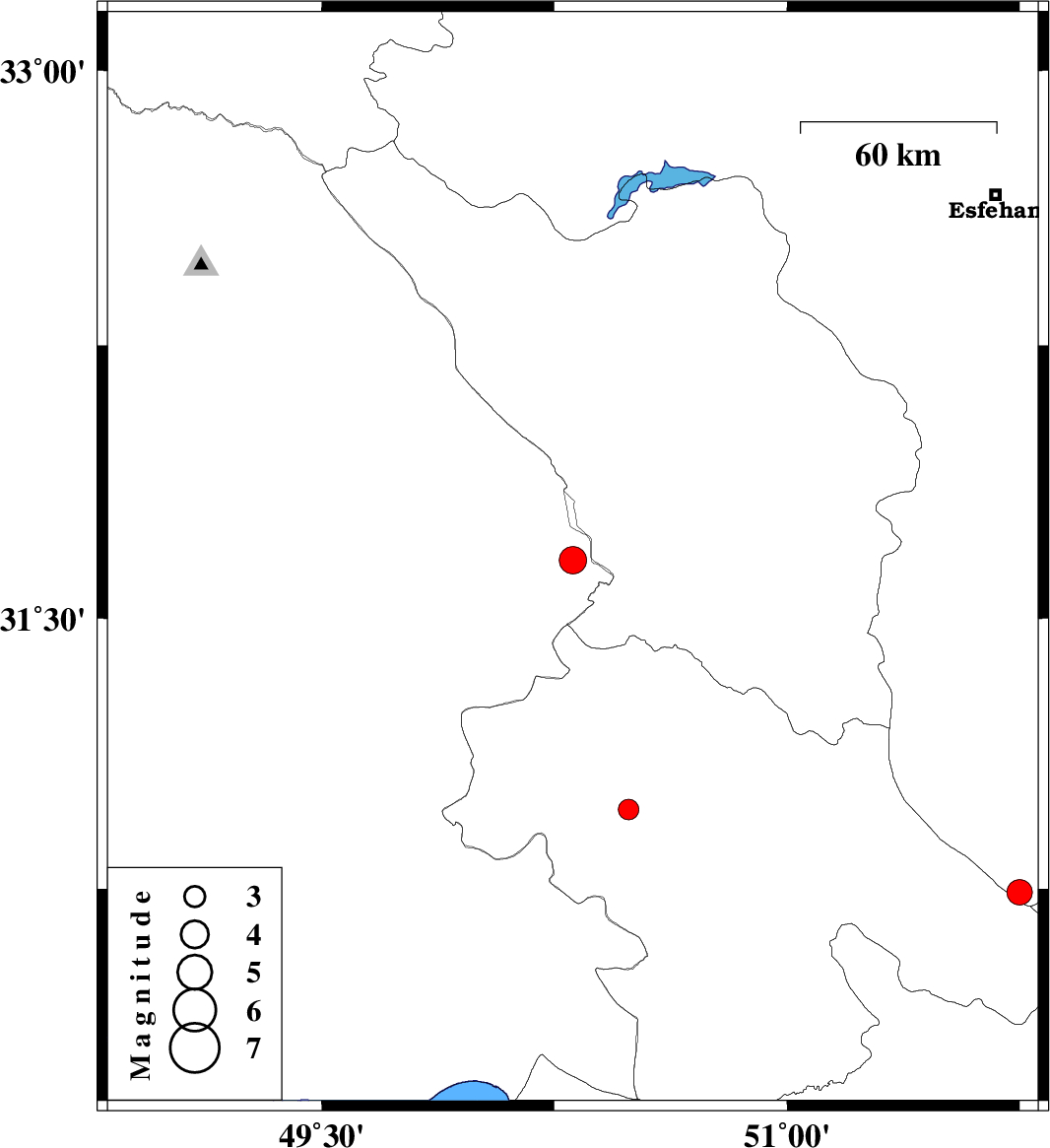 | 2012/08/02 | 07:10:56.2 | 11:40:56.2 | 30.74 | 51.75 | 15 | ML:3.6 | Esfahan Province, 18 km East of Yasuj | ||