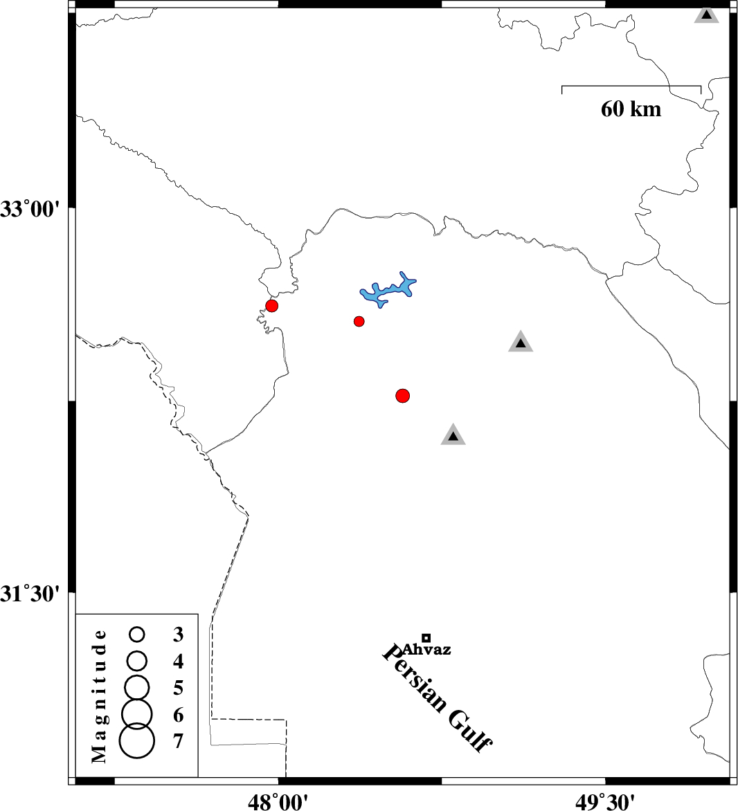 | 2012/08/06 | 00:19:07.3 | 04:49:07.3 | 32.27 | 48.57 | 14 | ML:2.8 | Khoozestan Province, 20 km South-East of Dezful | ||