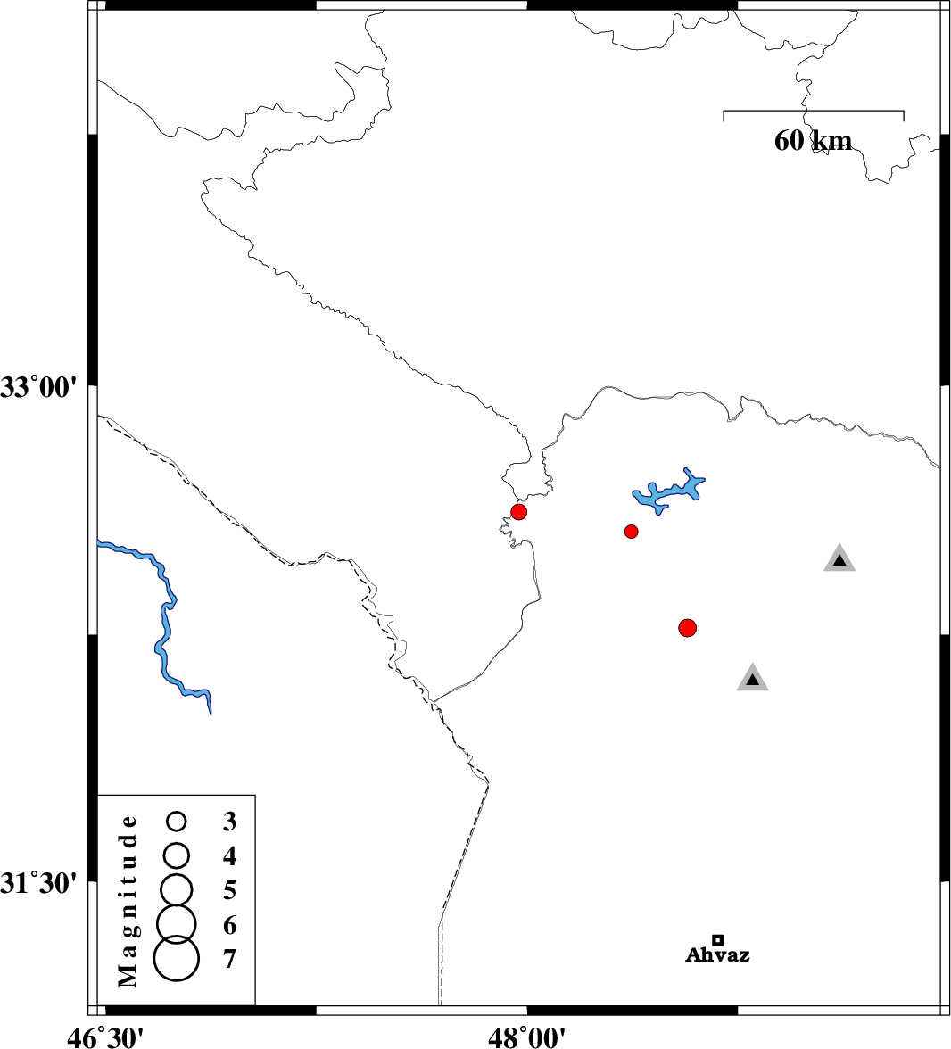 | 2012/08/02 | 22:18:10.3 | 02:48:10.3 | 32.56 | 48.37 | 18 | ML:2.1 | Khoozestan Province, 11 km North of Andimeshk |