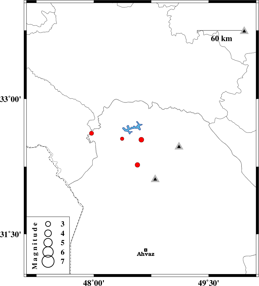 | 2012/08/06 | 00:19:07.3 | 04:49:07.3 | 32.27 | 48.57 | 14 | ML:2.8 | Khoozestan Province, 20 km South-East of Dezful | ||