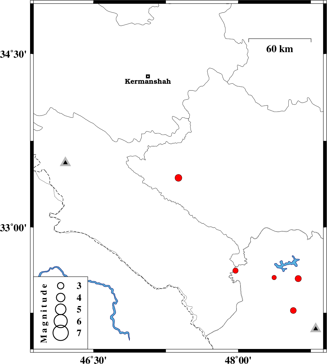 | 2012/08/08 | 04:03:35.9 | 08:33:35.9 | 33.43 | 47.38 | 14 | ML:3.3 | Lorestan Province, 24 km West of Kuhdasht | ||