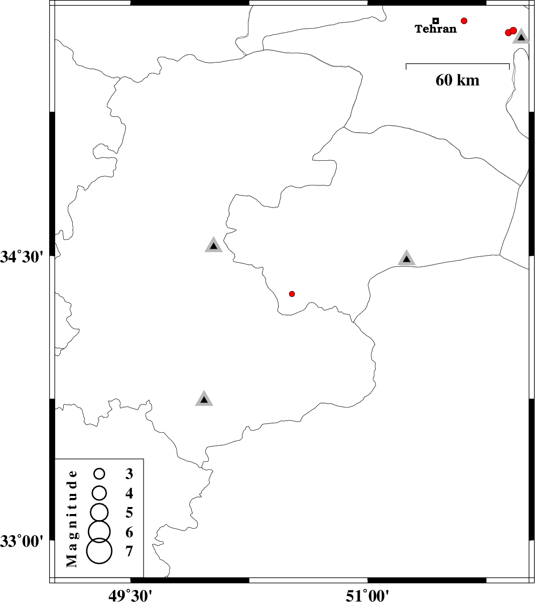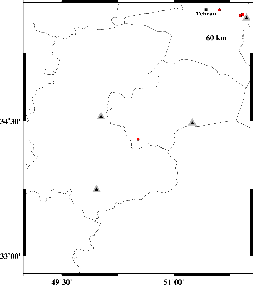 | 2012/08/05 | 13:50:57.4 | 18:20:57.4 | 35.66 | 51.89 | 11 | ML:1.9 | Tehran Province, 18 km West of Damavand |