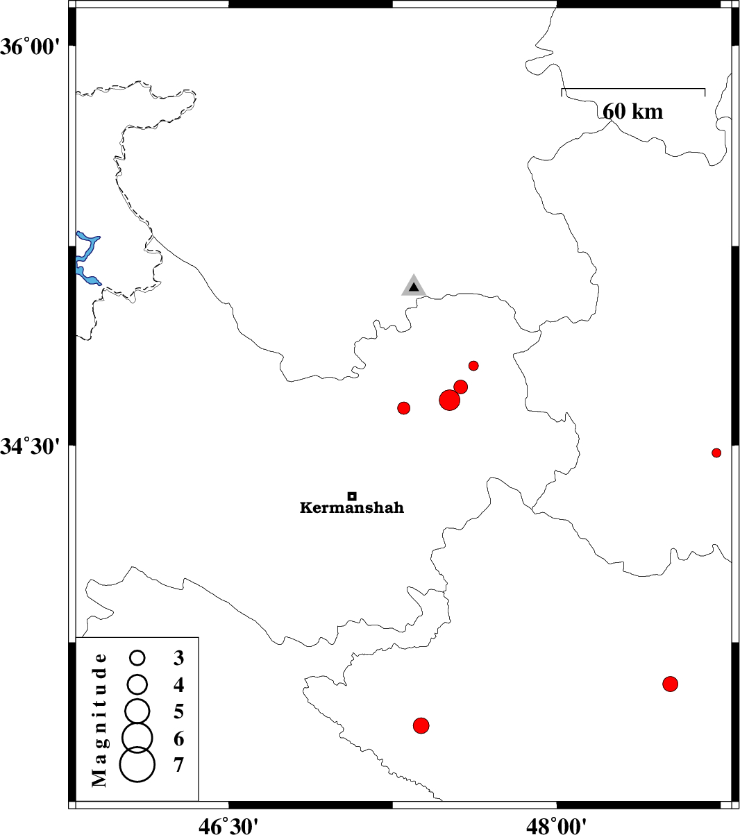 | 2012/07/14 | 06:57:13.5 | 11:27:13.5 | 34.72 | 47.56 | 14 | ML:2.8 | Kermanshah Province, 8 km Sonqor | ||