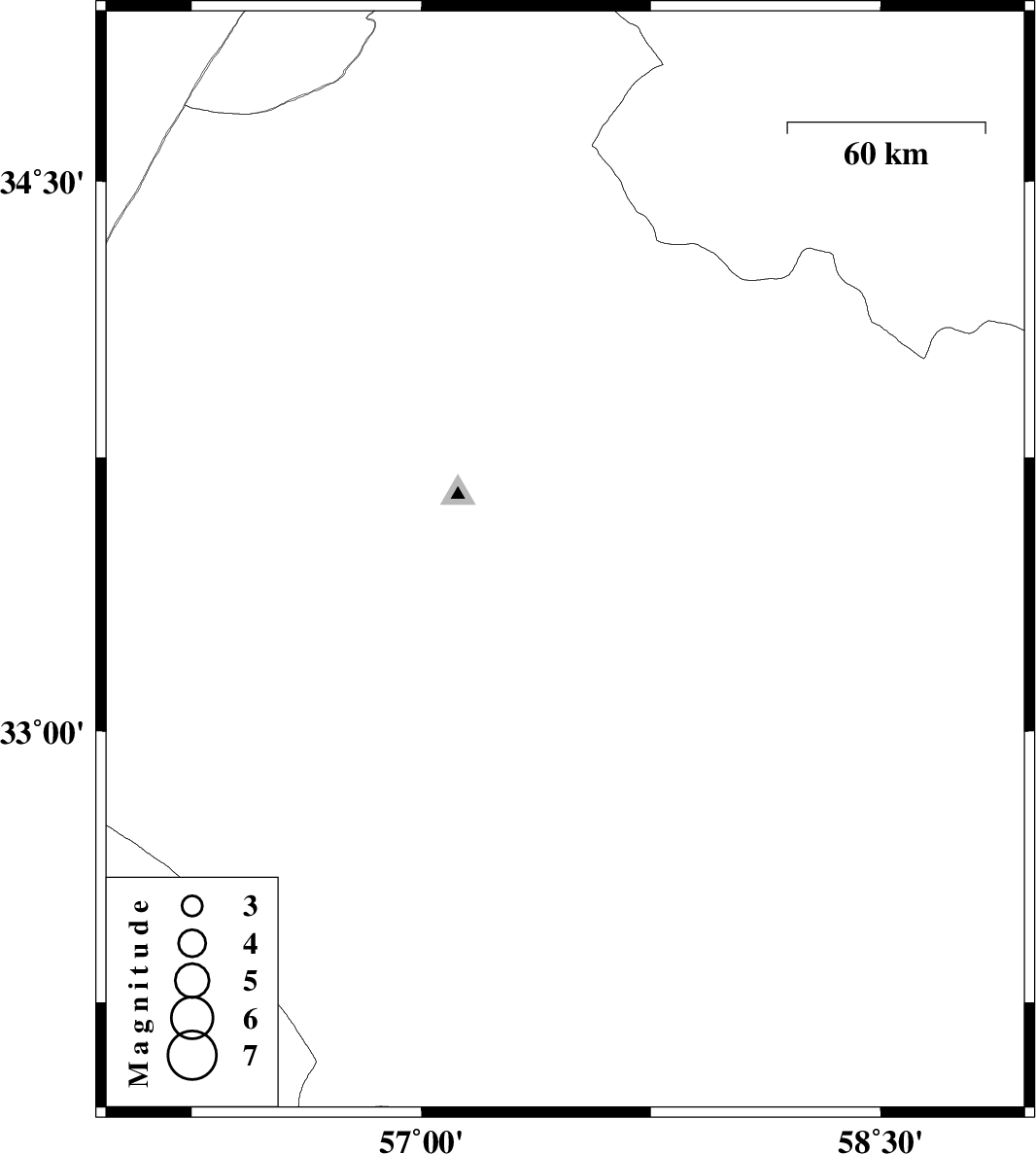 | 2012/08/09 | 11:06:40.6 | 15:36:40.6 | 33.46 | 57.47 | 11 | ML:2.7 | Yazd Province, 53 km South-East of Tabas |