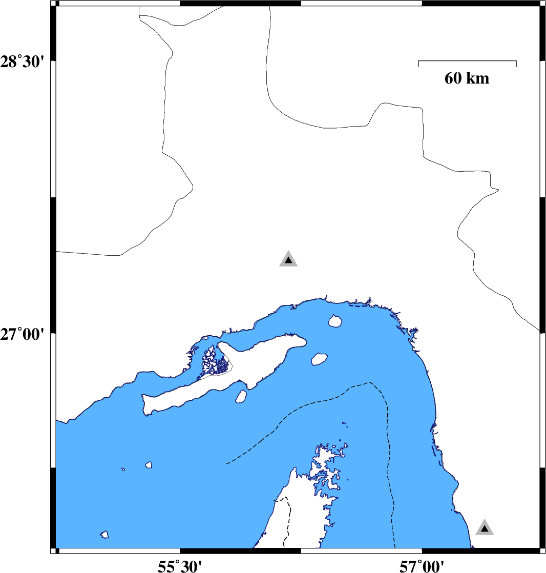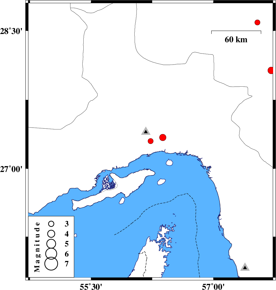 | 2012/08/11 | 11:14:21.7 | 15:44:21.7 | 28.07 | 57.71 | 30 | ML:3.8 | Kerman Province, 14 km North of Kahnuj | ||