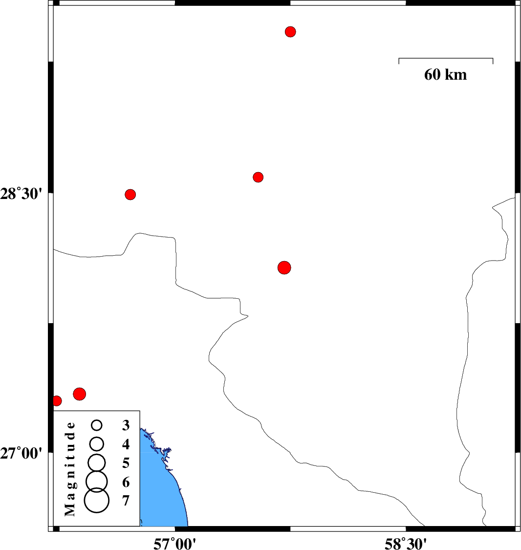 | 2012/08/11 | 11:14:21.7 | 15:44:21.7 | 28.07 | 57.71 | 30 | ML:3.8 | Kerman Province, 14 km North of Kahnuj | ||