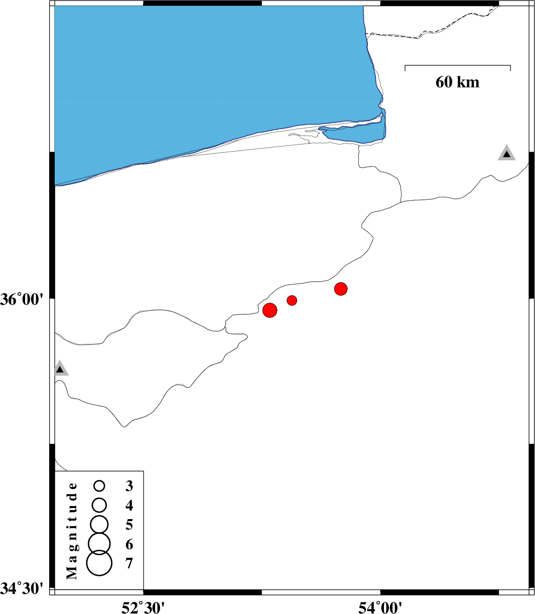 | 2012/08/06 | 07:04:18.3 | 11:34:18.3 | 35.94 | 53.3 | 14 | ML:4.1 | Semnan Province, 29 km South-East of Pol-E-Sefid | ||