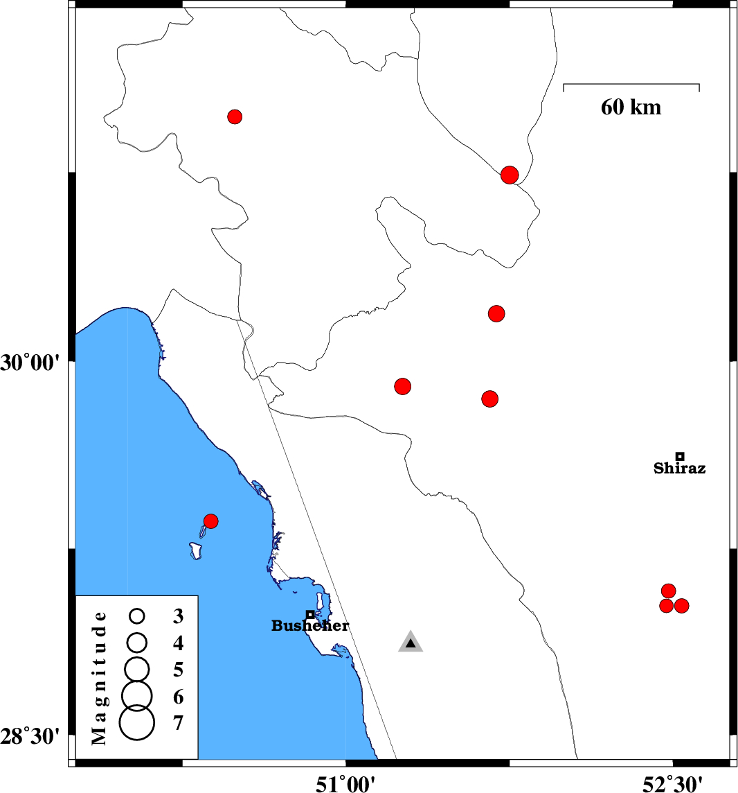 | 2012/08/02 | 19:40:36.5 | 00:10:36.5 | 29.36 | 50.38 | 14 | ML:3 | Persian Gulf, 28 km South-West of Bandar-e genaveh | ||