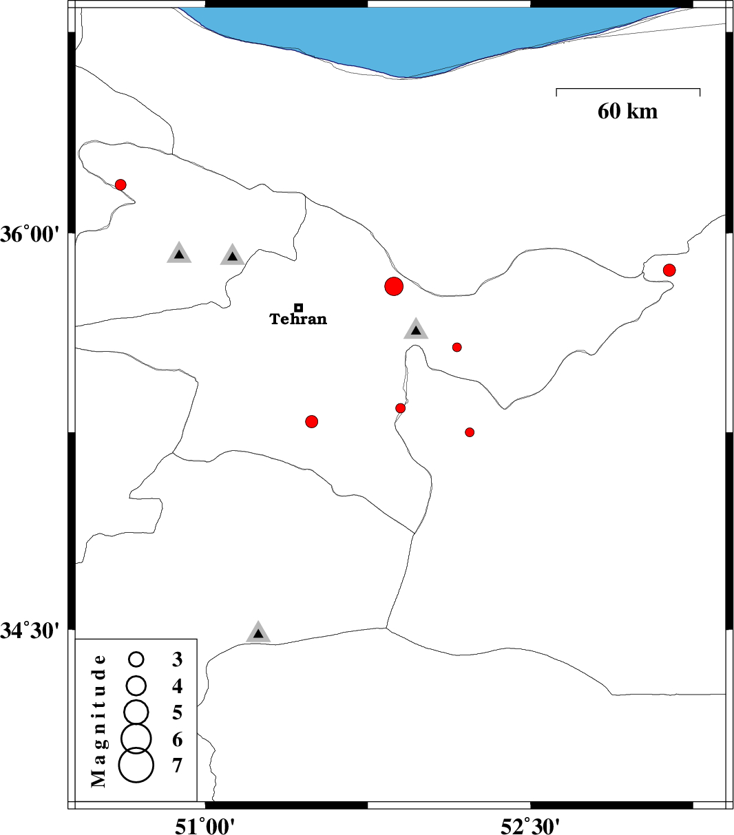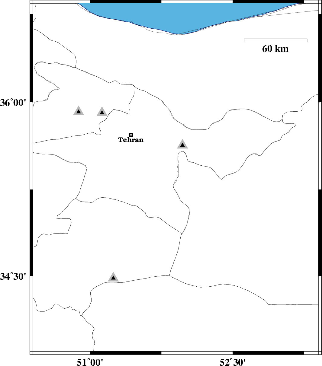 | 2012/08/19 | 11:28:04.3 | 15:58:04.3 | 36.18 | 50.61 | 14 | ML:2.2 | Tehran Province, 17 km North of Abyek | ||