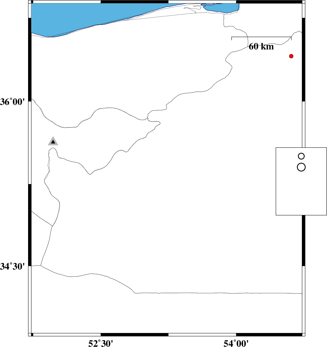 | 2012/08/16 | 22:00:51.4 | 02:30:51.4 | 35.86 | 53.14 | 18 | ML:2.6 | Semnan Province, 30 km South of Pol-E-Sefid | ||