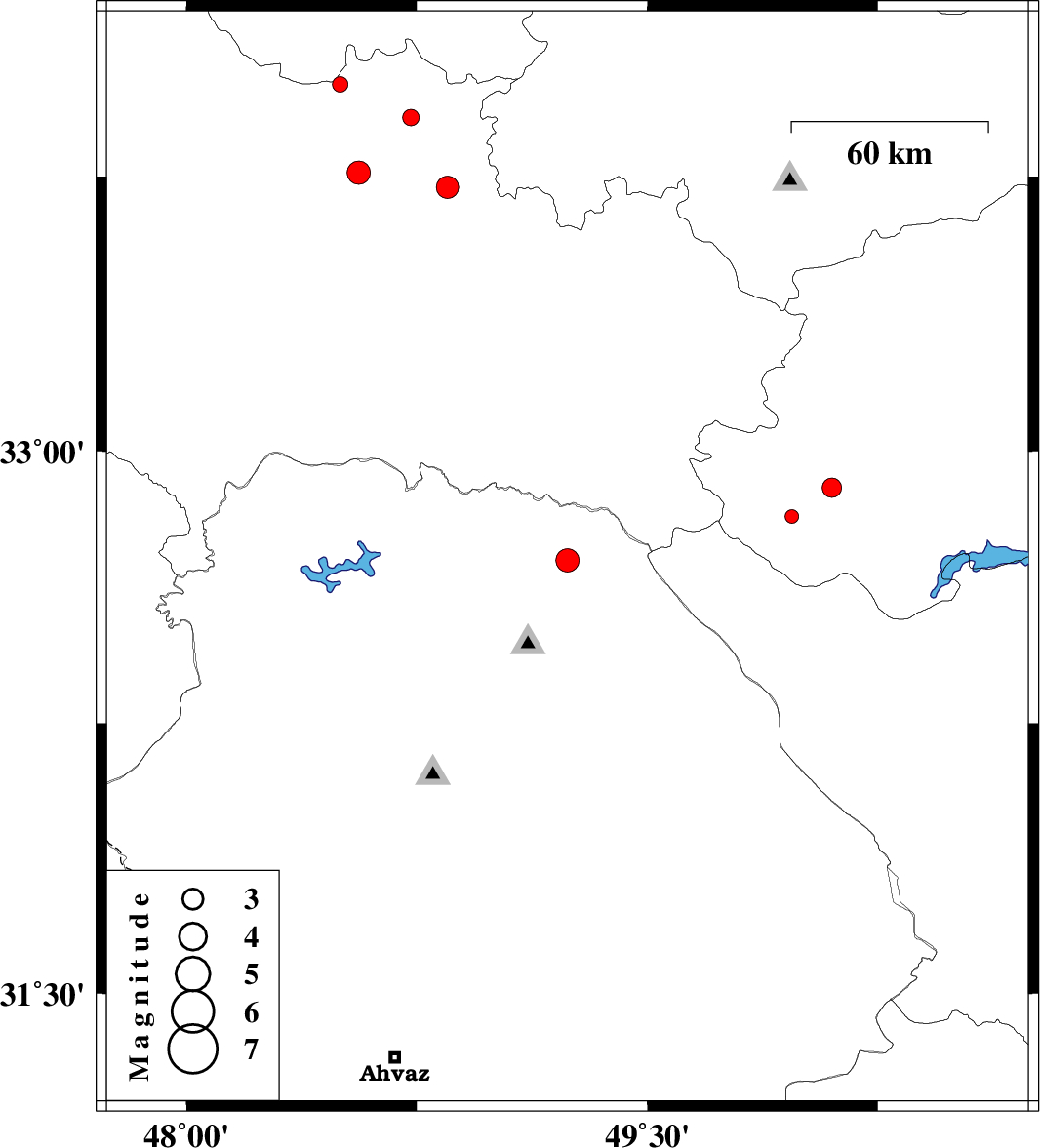 | 2012/08/22 | 06:44:01.7 | 11:14:01.7 | 32.82 | 49.97 | 14 | ML:2 | Esfahan Province, 19 km South-West of Fereydunshahr | ||