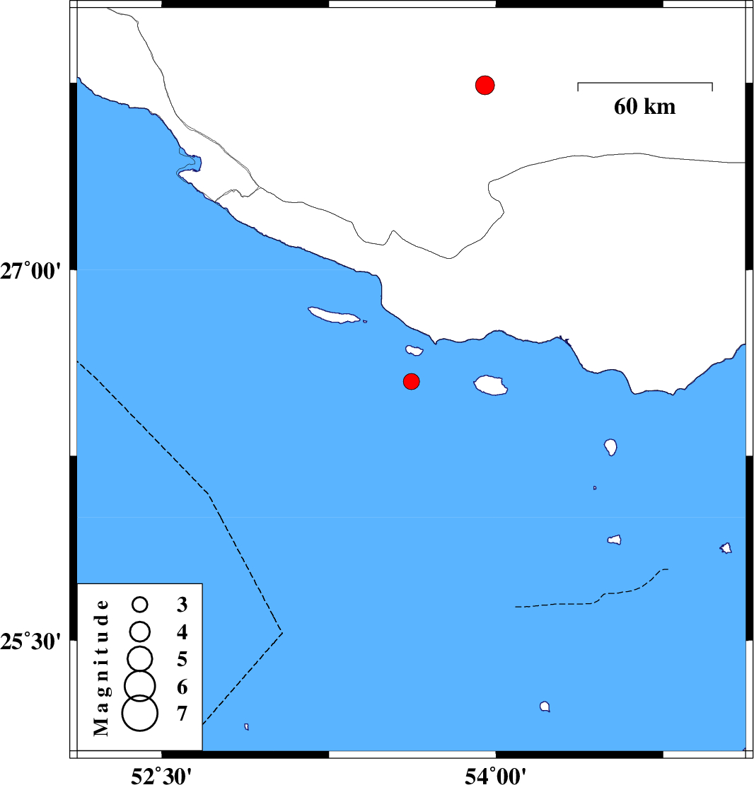 2012/08/26 04:57:09.5 09:27:09.5 26.5553.6216 ML:3.2 Persian Gulf, 98 km South-East of Lamerd