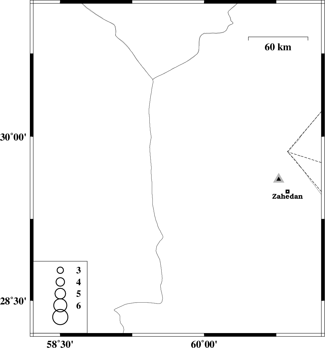 | 2012/09/02 | 00:57:23.9 | 05:27:23.9 | 29.7 | 59.72 | 18 | ML:3.9 | Sistan va Baloochestan Province, 113 km North-West of Zahedan |