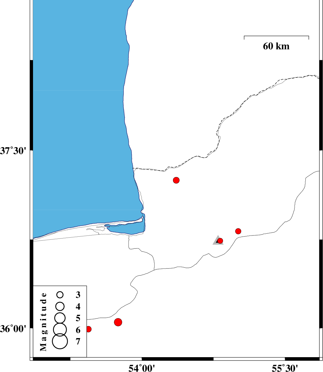 | 2012/08/29 | 23:46:21.5 | 04:16:21.5 | 36.74 | 54.82 | 15 | ML:2.5 | Golestan Province, 18 km South of Ali Abad | ||