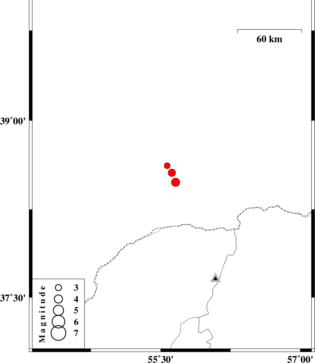| 2012/09/08 | 03:17:37.3 | 07:47:37.3 | 38.48 | 55.66 | 14 | ML:4.1 | Turkmenistan | ||