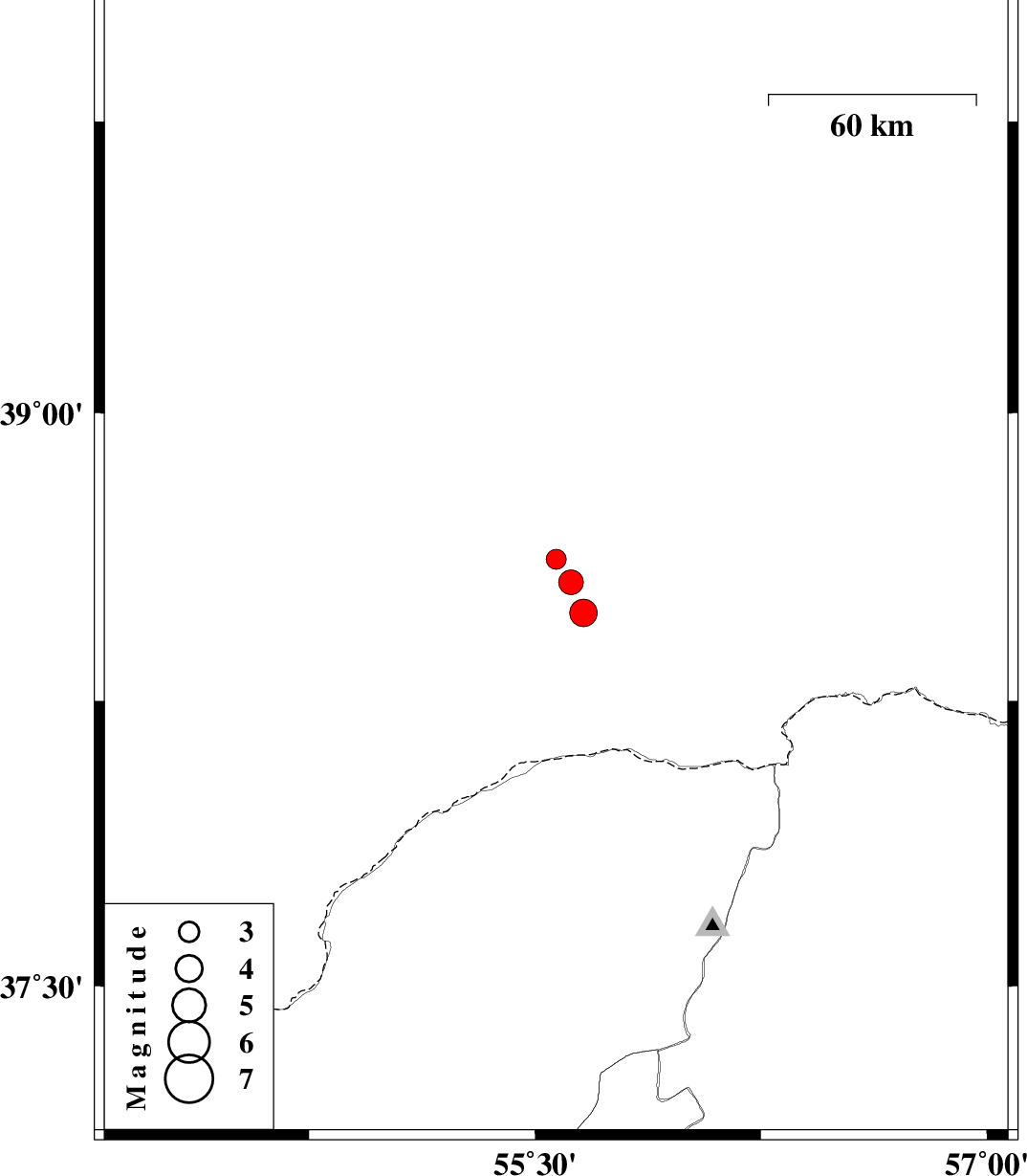 | 2012/09/08 | 03:17:37.3 | 07:47:37.3 | 38.48 | 55.66 | 14 | ML:4.1 | Turkmenistan | ||