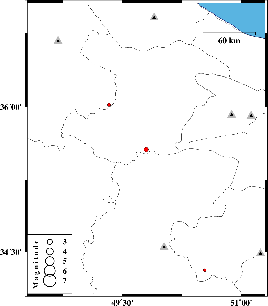 | 2012/09/11 | 09:00:54.8 | 13:30:54.8 | 36.02 | 49.33 | 14 | ML:1.9 | Zanjan Province, 17 km South-East of Abhar | ||