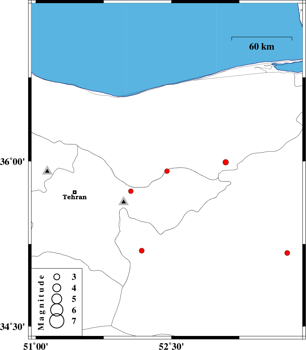 | 2012/09/09 | 03:24:00.7 | 07:54:00.7 | 35.17 | 53.78 | 16 | ML:2.6 | Semnan Province, 56 km South-East of Semnan |
