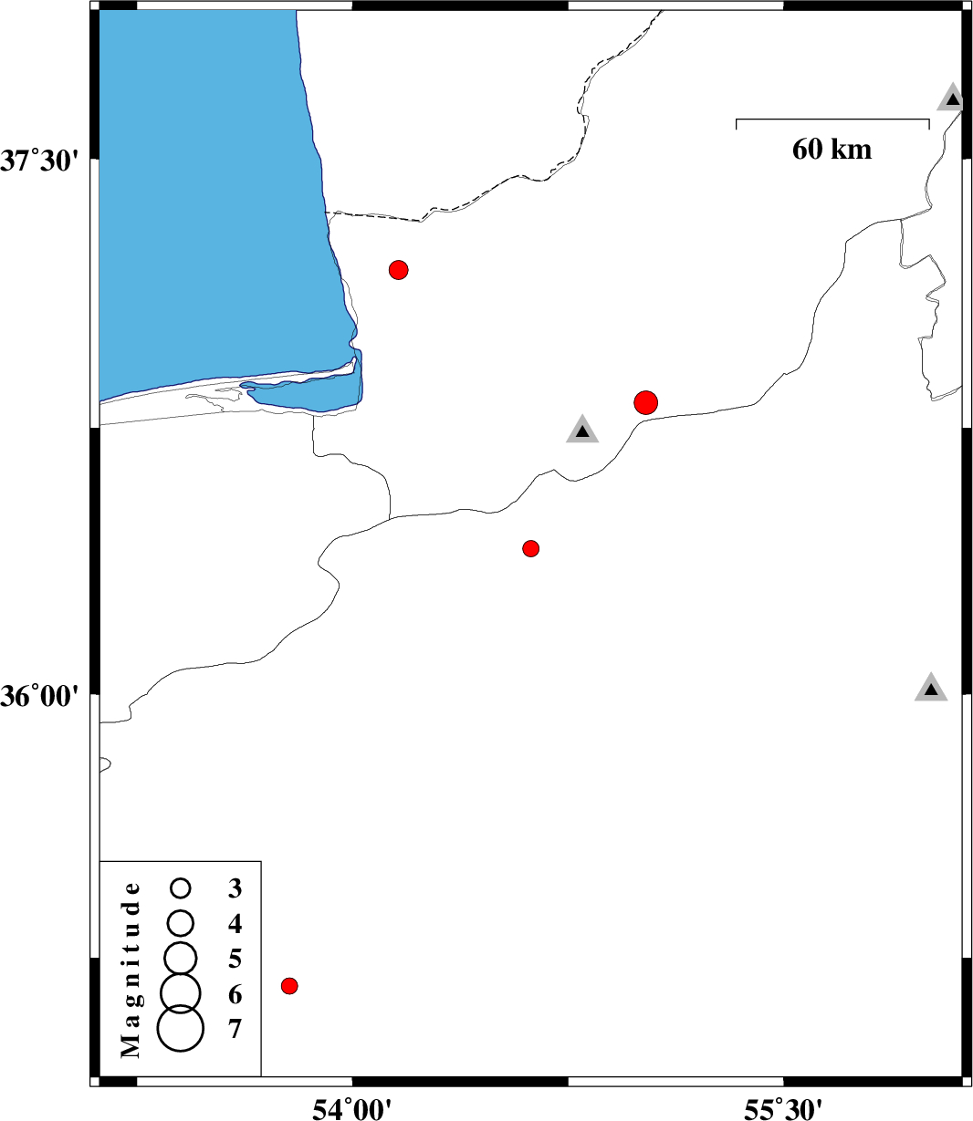 | 2012/09/09 | 16:37:10.9 | 21:07:10.9 | 37.19 | 54.16 | 16 | ML:2.9 | Golestan Province, 33 km North of Bandar-e torkaman | ||