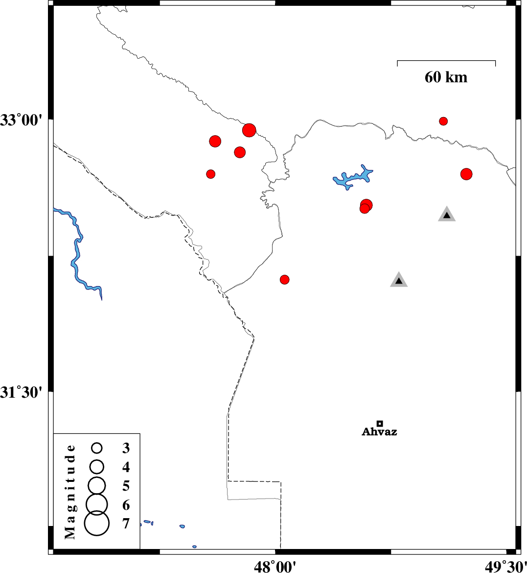 2012/09/07 | 16:15:11.1 | 20:45:11.1 | 32.51 | 48.58 | 16 | ML:2.8 | Khoozestan Province, 22 km East of Andimeshk | ||