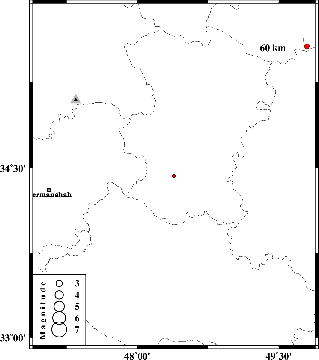 | 2012/09/18 | 02:41:51.8 | 07:11:51.8 | 34.43 | 48.39 | 38 | ML:1.6 | Hamedan Province, 15 km South of Tuyserkan | ||