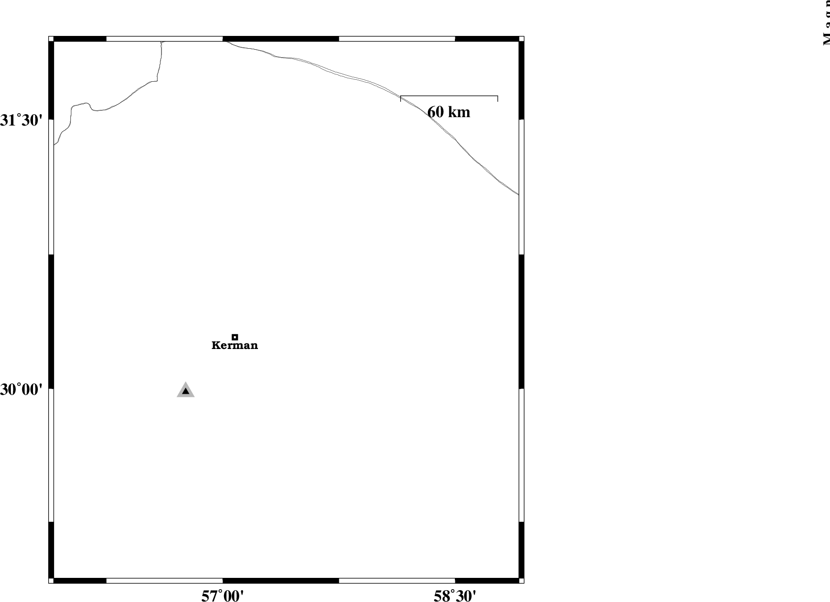 | 2012/09/18 | 13:22:54.5 | 17:52:54.5 | 30.43 | 57.41 | 14 | ML:2.9 | Kerman Province, 35 km North-East of Kerman | ||