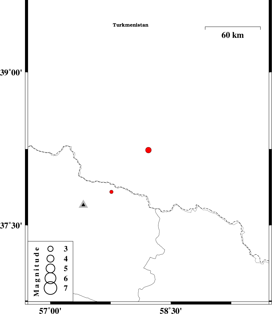 | 2012/09/17 | 04:26:55.8 | 08:56:55.8 | 37.83 | 57.76 | 6 | ML:2 | Khorasan(north) Province, 52 km North-West of Shirvan |