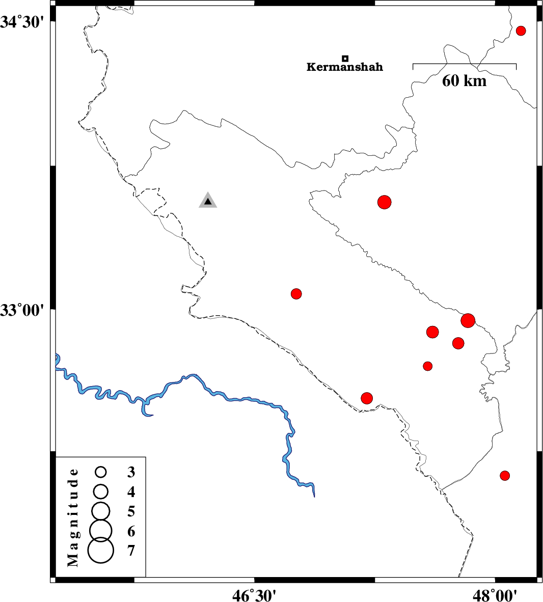 | 2012/09/19 | 11:59:40.4 | 16:29:40.4 | 33.56 | 47.31 | 14 | ML:3.8 | Lorestan Province, 28 km West of Kuhdasht | ||