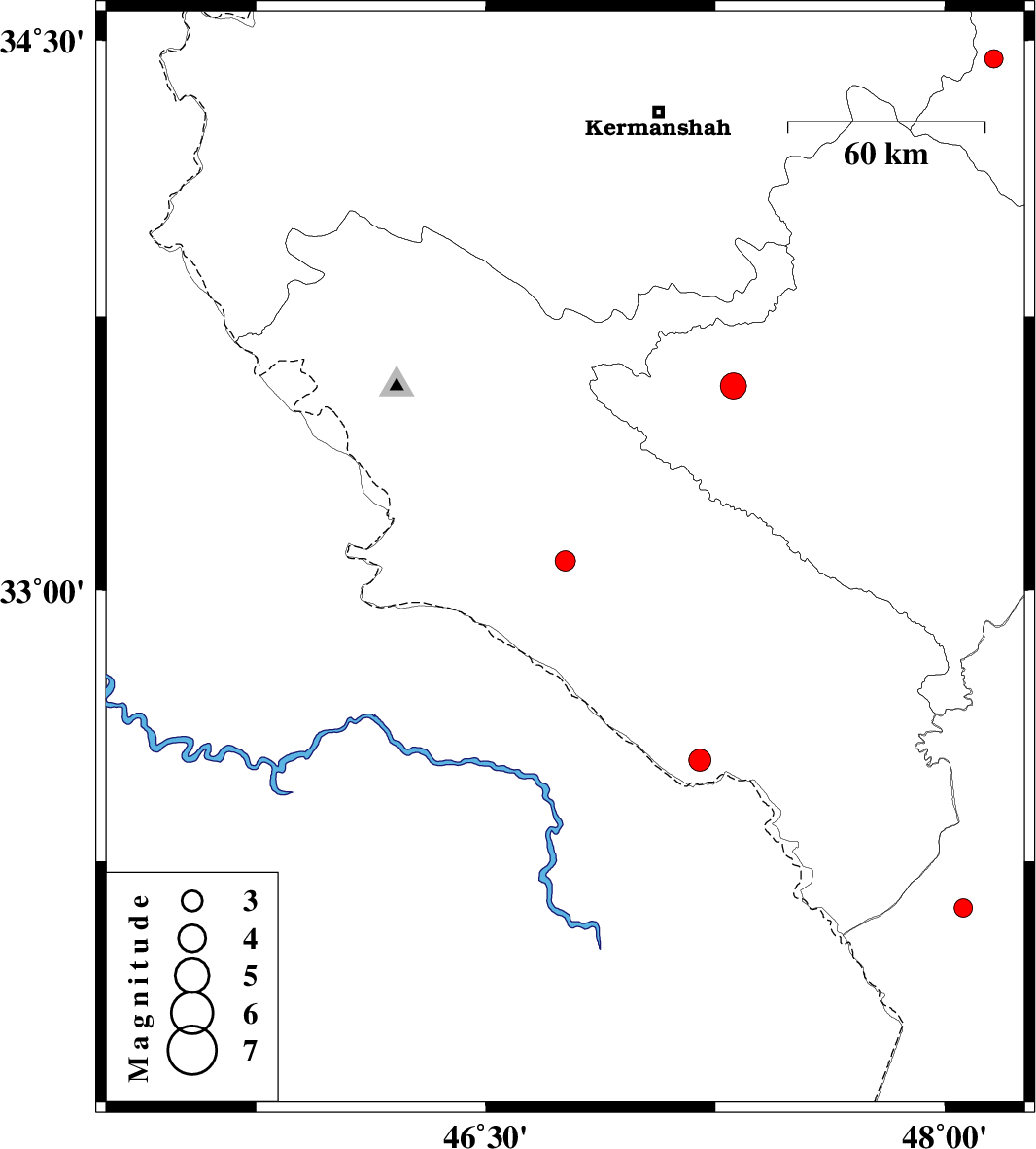 | 2012/09/19 | 11:59:40.4 | 16:29:40.4 | 33.56 | 47.31 | 14 | ML:3.8 | Lorestan Province, 28 km West of Kuhdasht | ||