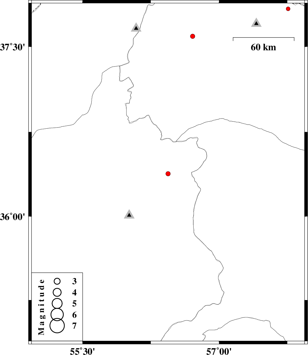 | 2012/09/17 | 04:26:55.8 | 08:56:55.8 | 37.83 | 57.76 | 6 | ML:2 | Khorasan(north) Province, 52 km North-West of Shirvan | ||