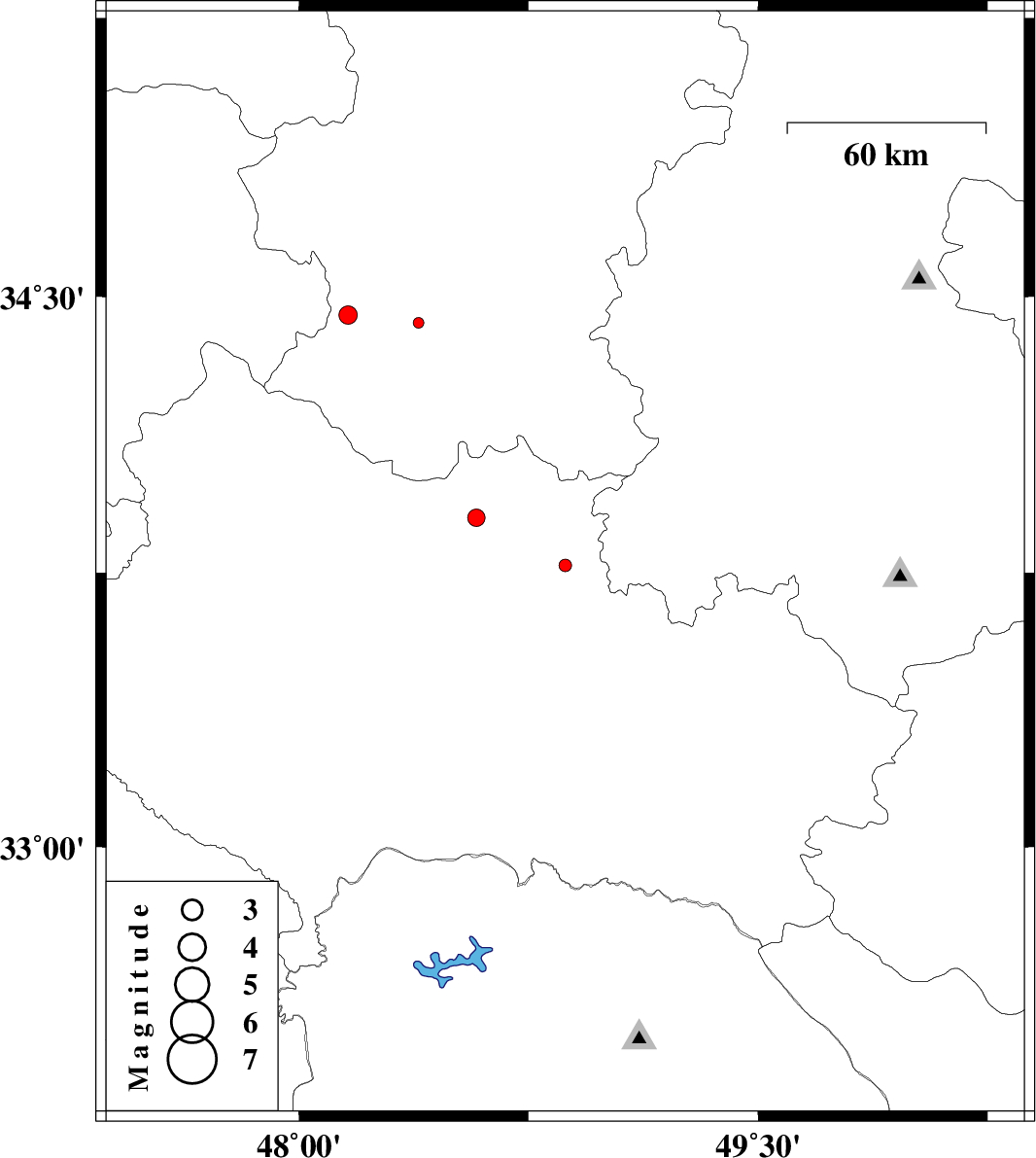 | 2012/09/24 | 10:56:16.0 | 14:26:16.0 | 33.9 | 48.58 | 28 | ML:2.5 | Lorestan Province, 16 km West of Borujerd | ||