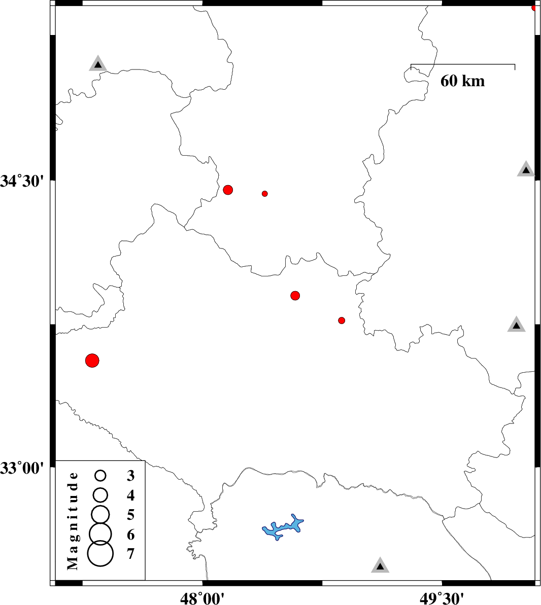 | 2012/09/19 | 11:59:40.4 | 16:29:40.4 | 33.56 | 47.31 | 14 | ML:3.8 | Lorestan Province, 28 km West of Kuhdasht | ||