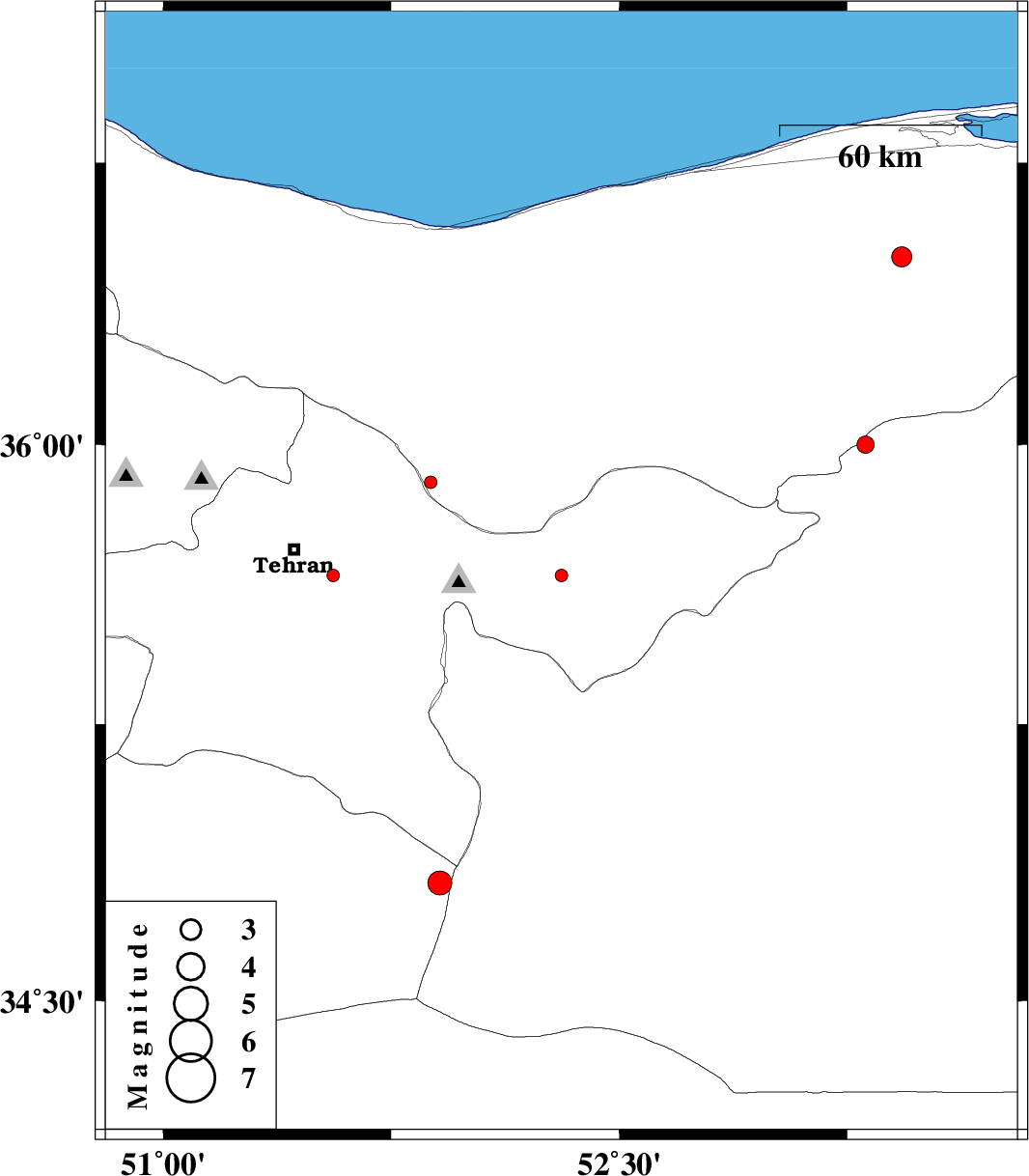 | 2012/09/25 | 08:15:04.2 | 11:45:04.2 | 34.82 | 51.91 | 14 | ML:3.5 | Qom Province, 60 km South-East of Varamin | ||