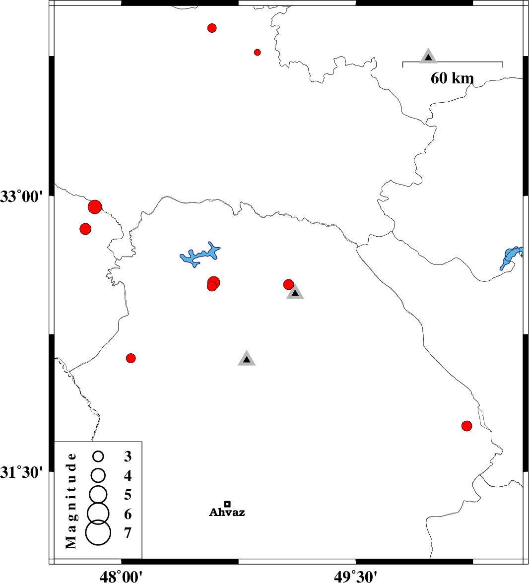 | 2012/09/28 | 10:45:51.9 | 14:15:51.9 | 32.52 | 49.07 | 14 | ML:3 | Khoozestan Province, 15 km North of Lali | ||