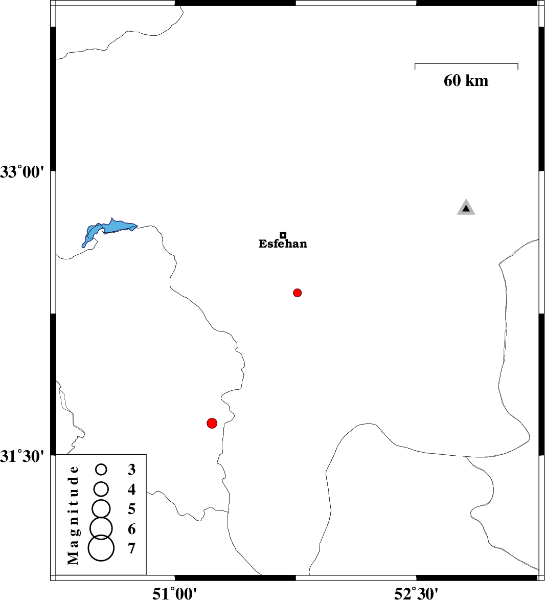 | 2012/10/01 | 11:42:23.7 | 15:12:23.7 | 32.36 | 51.76 | 14 | ML:2.2 | Esfahan Province, 32 km East of Mobarakeh | ||