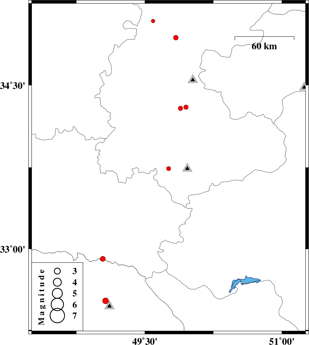 | 2012/09/29 | 07:12:33.7 | 10:42:33.7 | 34.93 | 49.84 | 14 | ML:2.4 | Markazi Province, 32 km North-West of Tafresh | ||